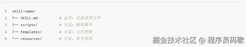 3、资源文件 (Resources): 这是最厉害的地方!它可能包含 Python 代码 或其他执行程序,保证程序在调用 Skill 时能完成复杂的动作。