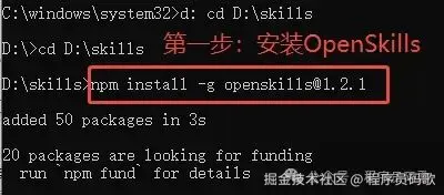 4步就能使用上,非常简单。 第一步、安装OpenSkills npm install -g openskills@1.2.1