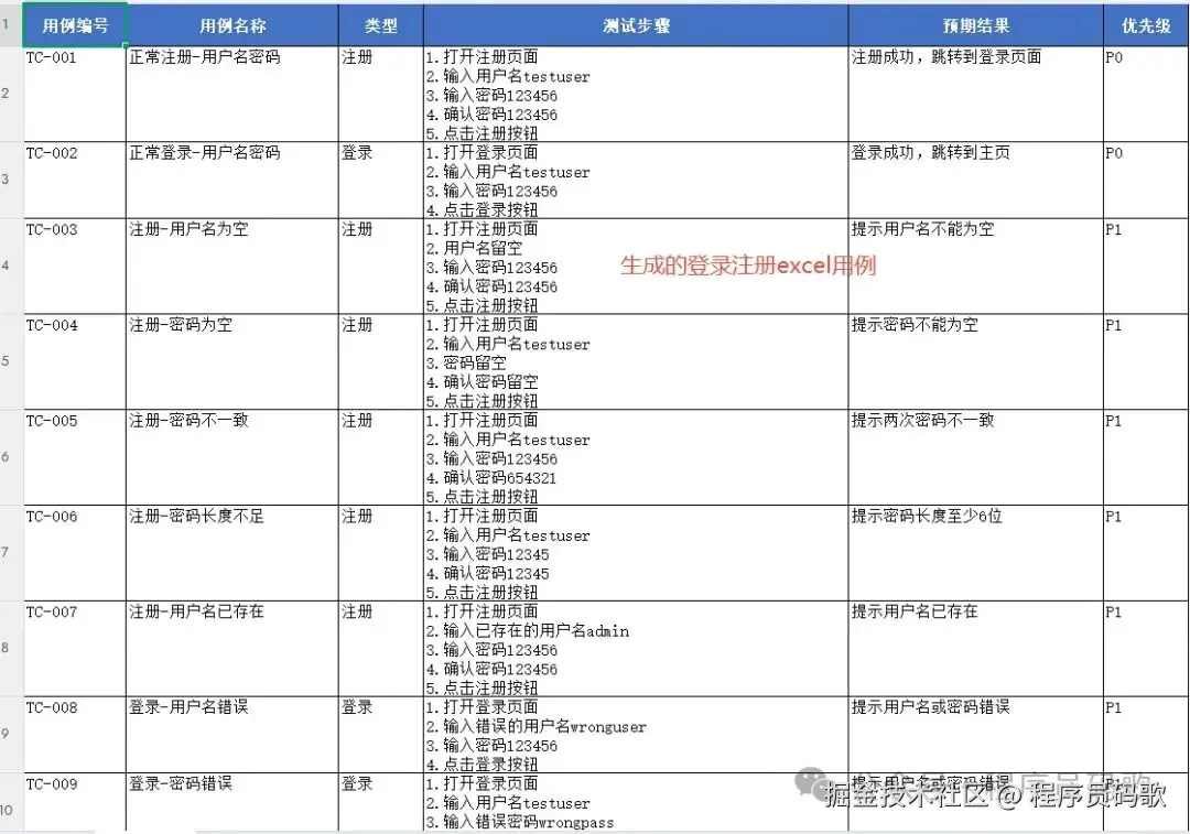 第四步、cursor上使用案例 使用xlsx skills生成20条登录注册用例