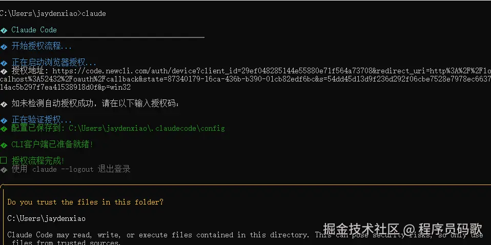 然后选择一个文件夹,终端输入: claude,即可启动(要挂梯子,纯国外邮箱,也可以找些代理商)。