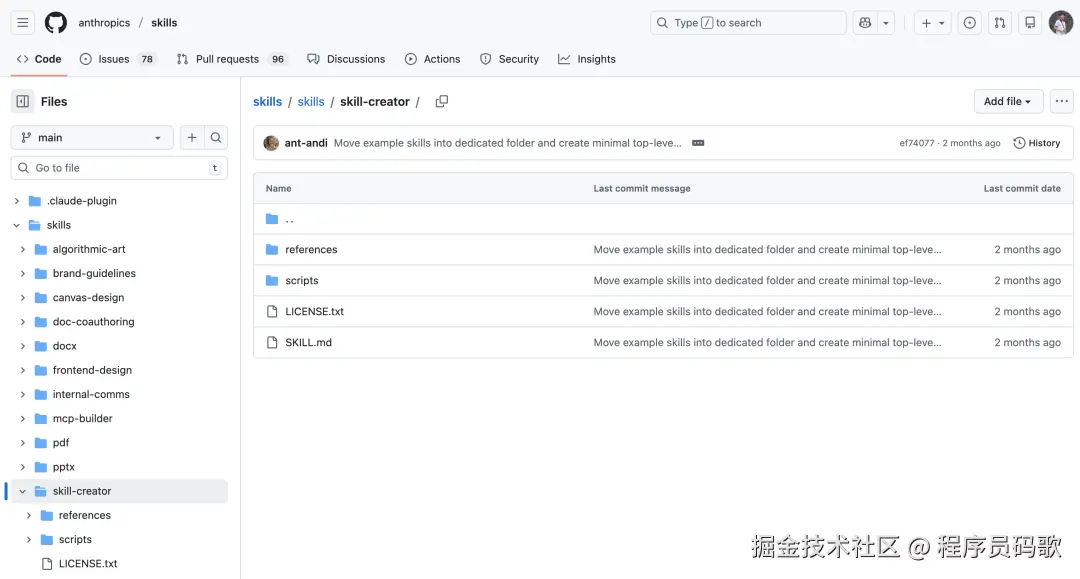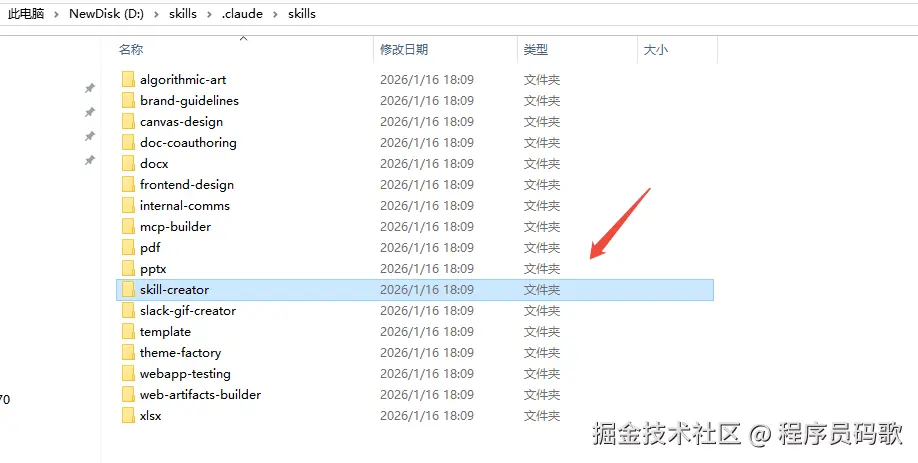 非常推荐大家先安装 Anthropic 官方的一个 skill:skill-creator,他就是专门用来创建 skill 的 skill。