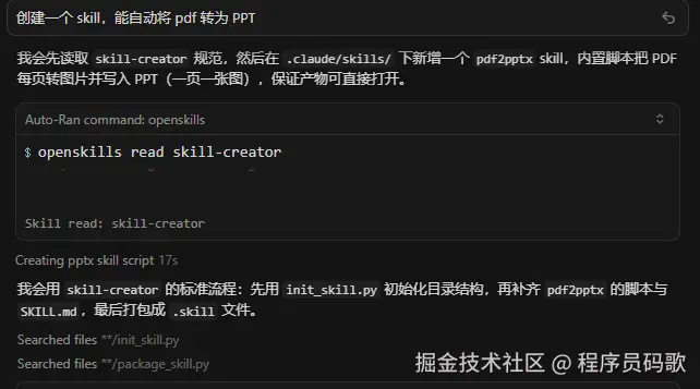 接下来就什么都不用管了,很快就生成好了这个 skill: