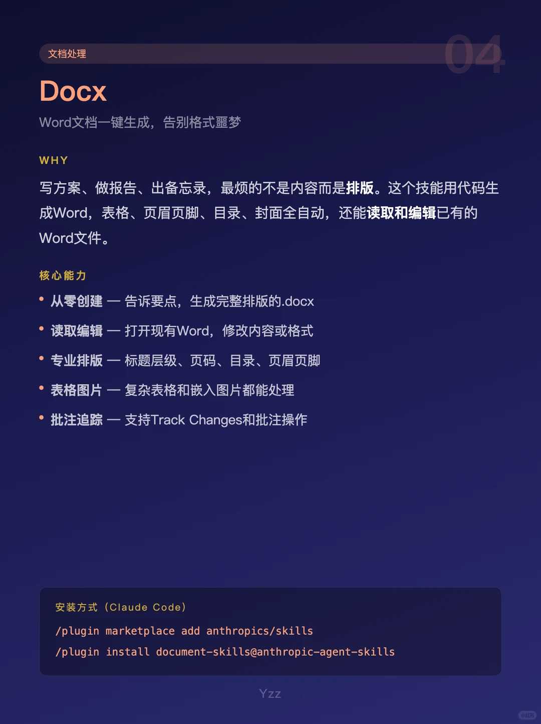 4. Docx :可以说是天天写材料的文职打工人王炸。它能极其精准地读取、底层修改甚至组装 Word 文件。能自动保留各种复杂的红头格式,甚至开启专业文档的追踪修订模式,绝不是简简单单的“让AI生成一段话你去复制粘贴”。