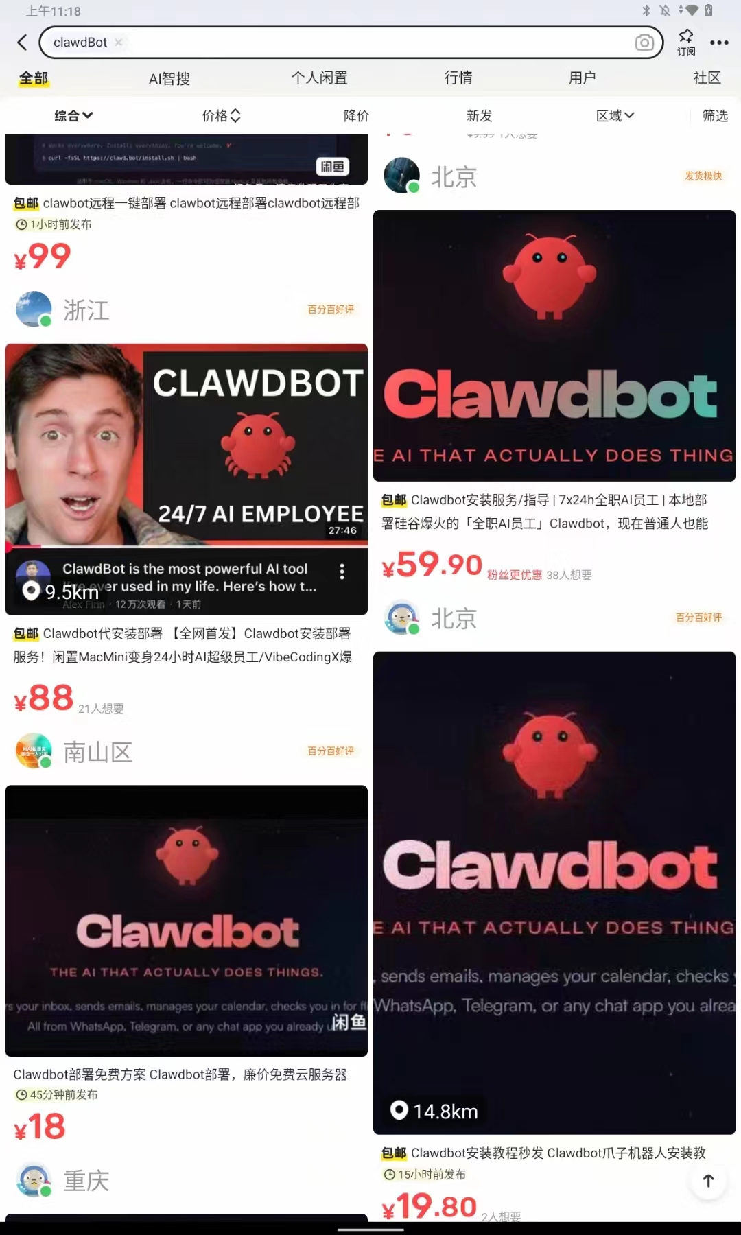 万能的咸鱼啊,最近 clawdbot 火啦!我就在咸鱼上随便搜了一下,好家伙,已经有好多人在上面挂出各种代安装、代配置的服务,而且订单量还挺稳定呢。每次有新玩意儿出现,头一波机会总是留给那些行动快的人。