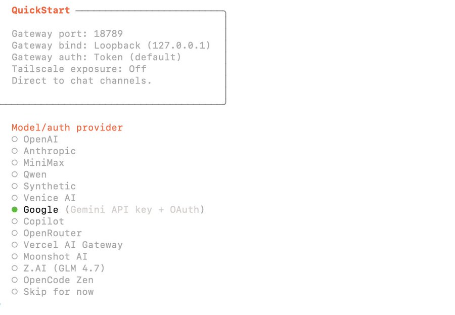 clawdbot onboard --flow quickstart 启动快速设置模式